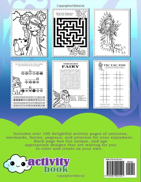 Fairy Mermaid Princess Pegasus Unicorn Activity Book for 4-8